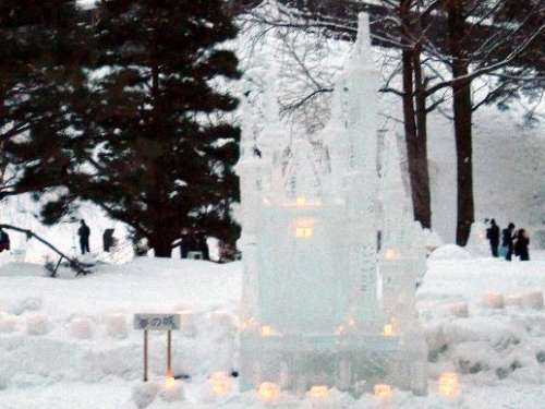 「いゃぁ、ごめんなさい」次の雪像へと進(jìn)みます、「イーハトーブの小學(xué)校」、「夢(mèng)の城」など力作が並んでいます