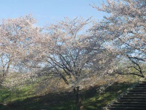 すると、公園や小學(xué)校校庭の“桜”が咲いています、見(jiàn)事です!