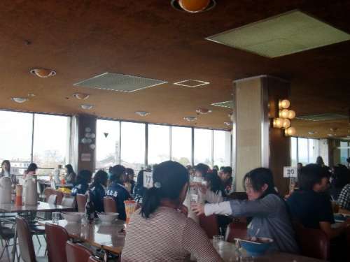 一番奧の窓側の席が一つ空きました、私が座ると女性の方が來て食券の半券を上手に切り取り持って行きます。