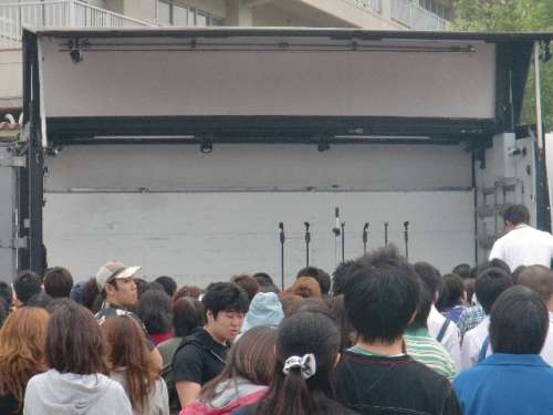 もはやニッポンの“スーパースーパーアイドル”です、物凄い人達で小學校のグランドは大混雑です
