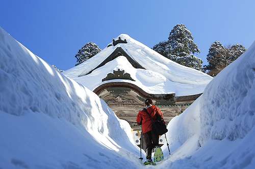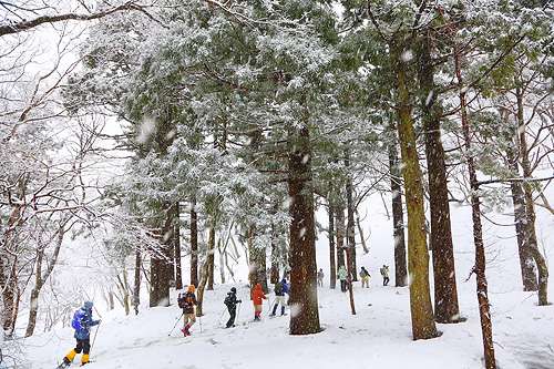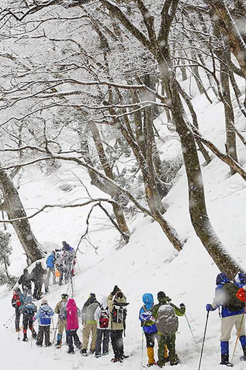 大山の冬の愉しみ。 スキー、スノボをする人以外はなかなか。なんて考える方も多いのではないでしょうか。 実は、大山の冬は四季を通じても一番にキレイとも言われるほどに、足を踏み入れるとところどころに感動的な風景が訪れるみなさんを迎えてくれます。 その自然の美しさにふれあえる體験こそが今回ご紹介したい「スノーシュー」。 冬のアクティビティにしては気軽で、またそれほど體力も必要ないことから幅広い年齢層にも支持され、今大山の冬遊びでも大きな注目を集め始めているのです。 スノーシューとは西洋式のかんじき。雪上の歩行具のことで、これを履くと深い雪の上を簡単に進め、雪深い大山の森をトレッキング可能なことから、スキー、スノボでは體験できない、身近な自然とのふれあい、また普段なかなかお目にかかれない雪のアートなど、様々な未體験な時間が用意されています。 今回はその魅力の一部をレポート。 ぜひこんな體験をしてみたいという方は気軽に問い合わせされてみてはいかがでしょうか? 取材初日のツアーはあいにくの吹雪模様。 顔を打つ雪の冷たさに耐えつつ、ふわふわの雪の上を一歩一歩前へ。 途中に立つ雪の白に染まる木々のオブジェに圧倒され、ガイドさんが丁寧に説明してくれる木々や森のトリビアにへぇ~と感動。寒さも忘れる時間を提供してくれました。 このあたりの標高になると乾いた雪が多いので、天から降り注ぐ雪がなぜだか白い紙ふぶきのように感じたり、また降り積もった雪の表面にはキレイな雪の結晶が現れたりと、少し注意深く周囲を見渡してみると様々な“気づき”があり、自然の偉大さに至る場所で驚かされたり。 とにかくスノーシューは未知なる體験の寶庫でもあるんですよ。 そして2日目。 この日は打って変わって快晴の一日。 真っ青な空の下で森へと出かけ、途中に観る、高さ3m近くはある雪の回廊に、冬を懸命に生きる動物たちの足跡、鳥の鳴き聲、木々の生命力などなど、自然の素晴らしさと偉大さに感動。 さらに雪に埋まる古剎「大神山神社奧宮」や、金門?元谷といった大山の北壁など絶景ポイントを獨り占め。雪が降ったすぐあとなら、雪の華とよばれる自然のアートにも遭遇。 こんな風景に包まれての記念撮影はきっと一生の思い出に。 とにかく他のアクティビティでは決して體験できない時間がこのスノーシューには詰め込まれているのです。