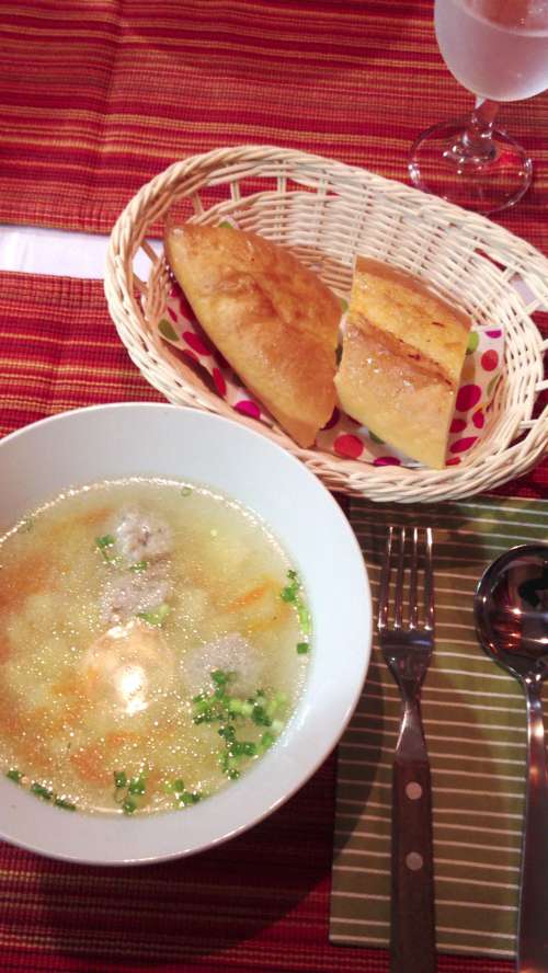 さて、テーブルにクリンニィスープが運ばれて來ました