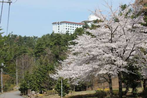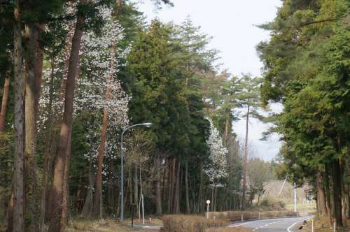 大山ロイヤルホテル向かう町道沿いにもコブシの花が目立っています。
