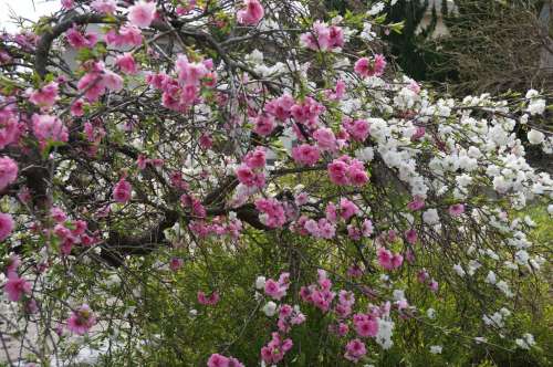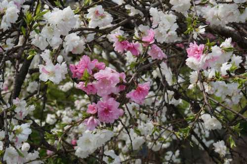 米子市內(nèi)と大山エリア結(jié)ぶ県道の途中、変わった木を発見。 なんと紅と白の花が一本の木から咲いています。 遅咲きの梅?桃の花?ちょっと私には判別できませんでしたが珍しい風景。