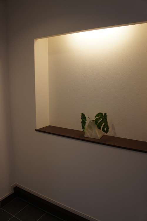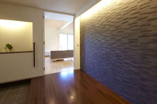 ホールの化粧壁【エコカラット】は間接照明との組み合わせにより