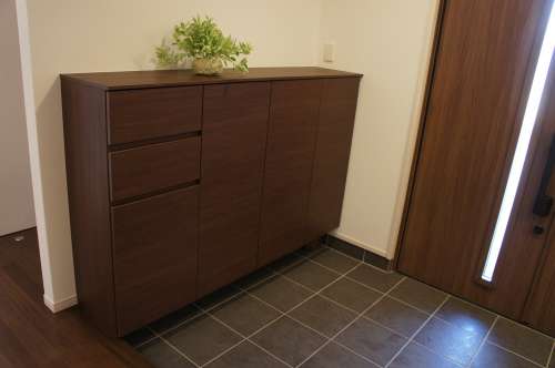 靴を収納するだけではなく、小物入れや來客に備えたスリッパ収納スペース