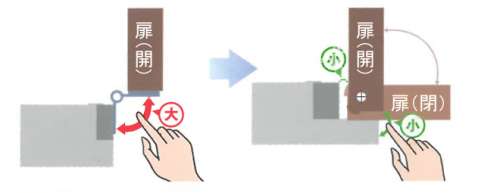屈み込まなくても、扉の開閉操作のみでロック出來ます。