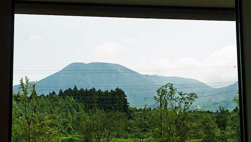 以前リポートした、畳スペースからみた阿蘇五岳の最高峰「高岳」をパシャリ