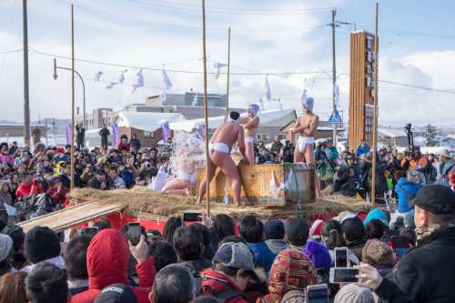 新幹線駅のある木古內町で毎年1月に行われる「寒中みそぎ祭り」。町內にある佐女川神社の神事で、例年大勢の人が見物に訪れます。