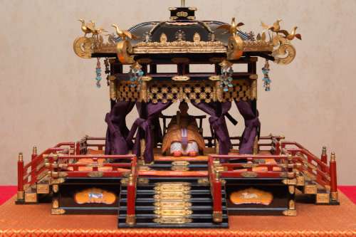 そのせいか、內裏びなの真ん中には天皇が座す「高御座(たかみくら)」が置かれています。中に座っているのは昭和天皇だそうです。