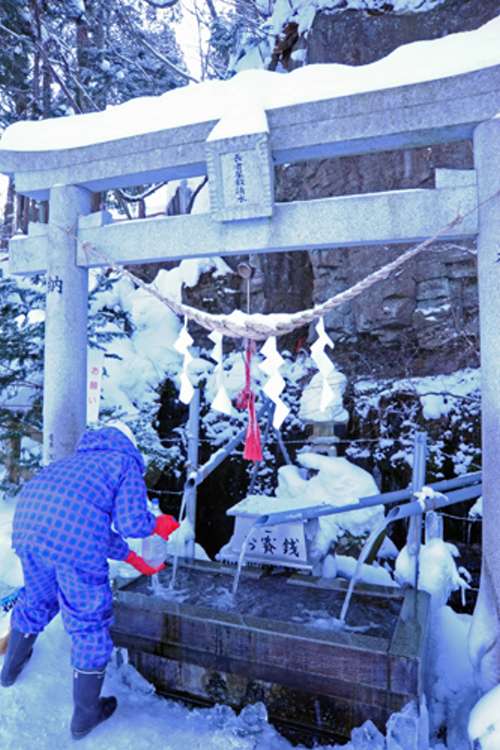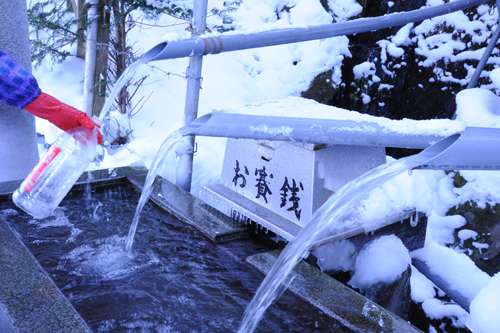 水を汲む方々はお賽銭をいれて