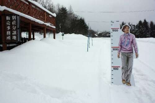 本日の現地案內所前で正午に観測した積雪は約35cm、気溫は約0℃曇っていて陽射しが無いので體感溫度は少し低めです。
