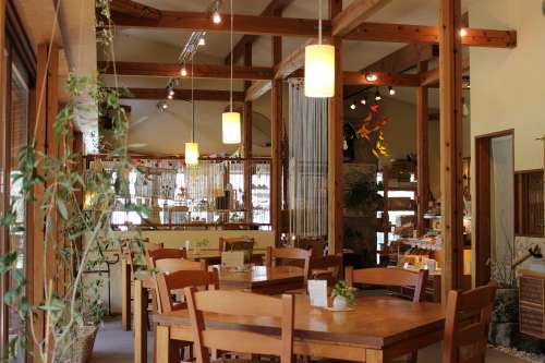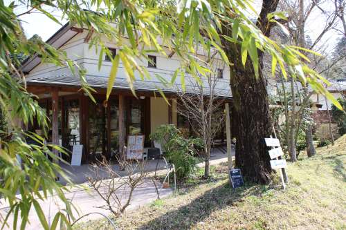 敷地內に湧出する天然水で淹れる日本茶が好評のカフェ