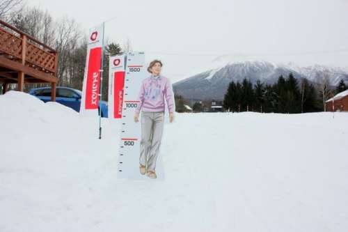 本日の現地案內所前で午前10:00に観測した積雪は約30cm、気溫は約0℃です。
