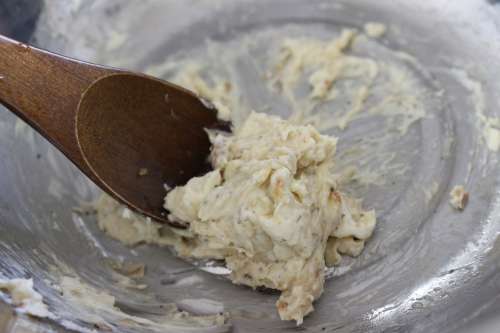 . ボウルにオリーブオイル、味噌、クリームチーズ、コショウを入れて混ぜ合わせる。