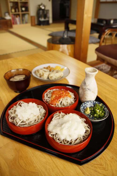 大根おろしと長芋、日替わり(寫真はおろしトマト)の3つのトッピングを楽しめます。