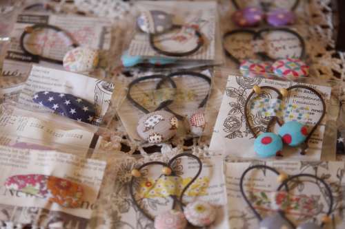 「fu design and HOLY ママの蔵」で販売しているヘアゴム。一點ものもあります
