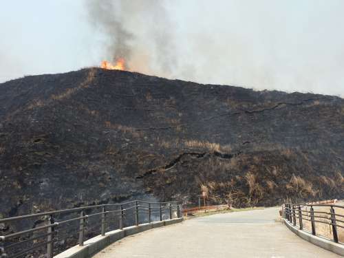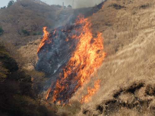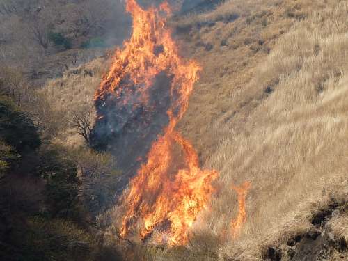 茶色の覆われていた草原が、「あっという間に黒焦げの山肌に