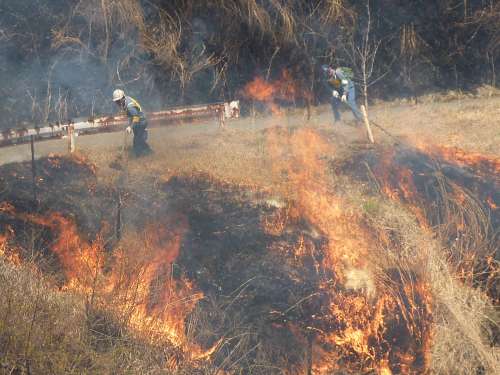 この野焼きが済んで1ヶ月ほど経てば、黒々とした土地が若草