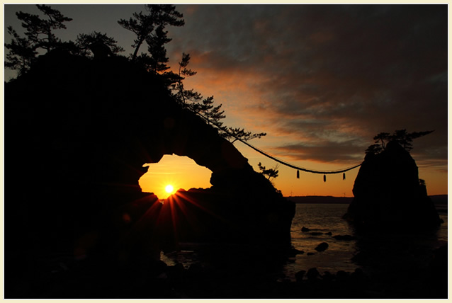 - 重量感のある作品です。夕日が巖の空洞に収まり、タイミングよく撮れました。