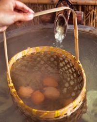 溫泉に卵をしずめると……。湯上がり後にゆで卵の出來上がり(松川荘)