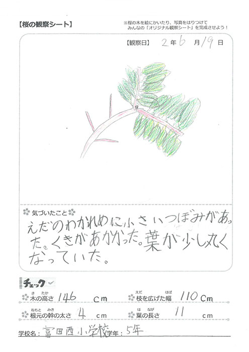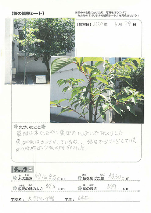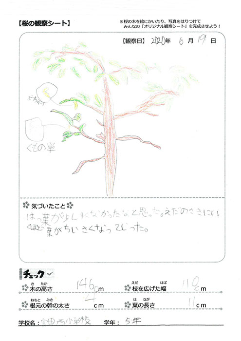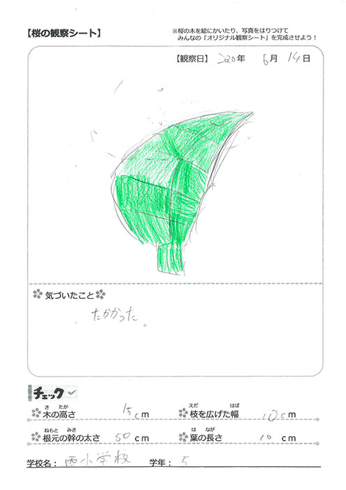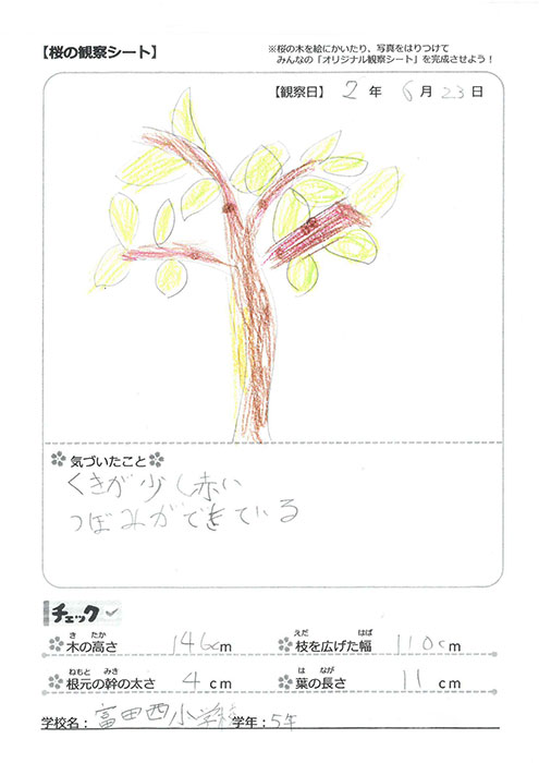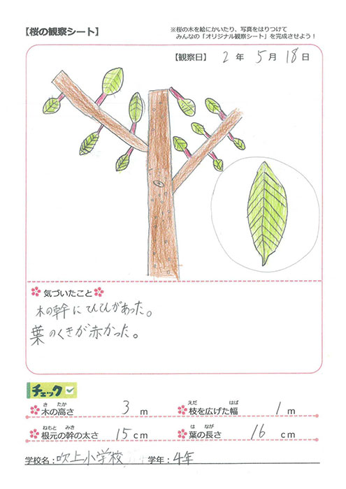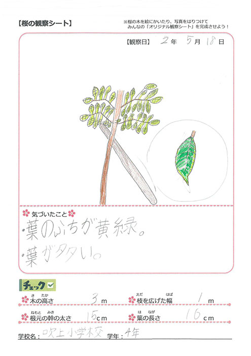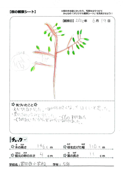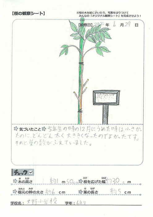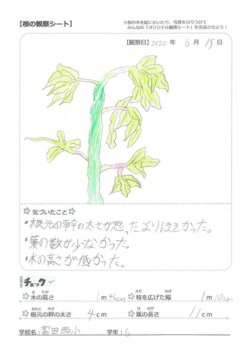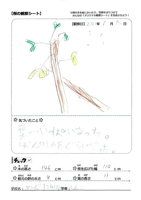 桜プロジェクトを?qū)g施した小學(xué)校?幼稚園で植えた桜の観察會(huì)を?qū)g施しています。 観察した桜を見て、みんなで桜の成長(zhǎng)を共に楽しもう!!