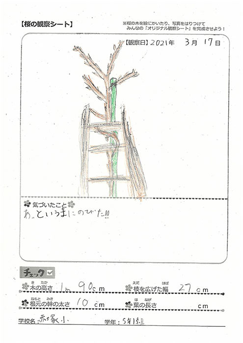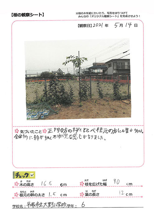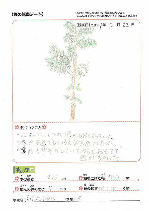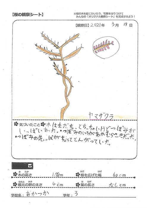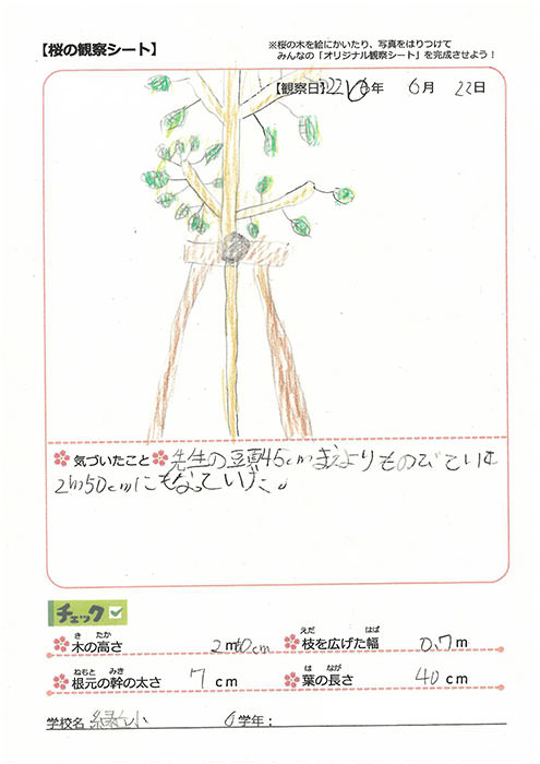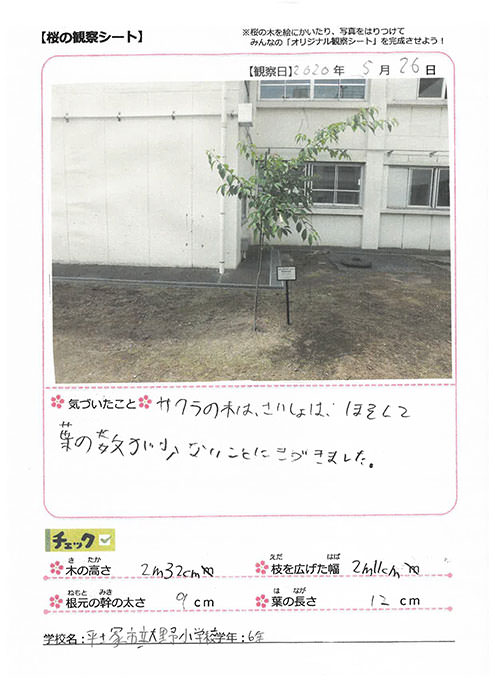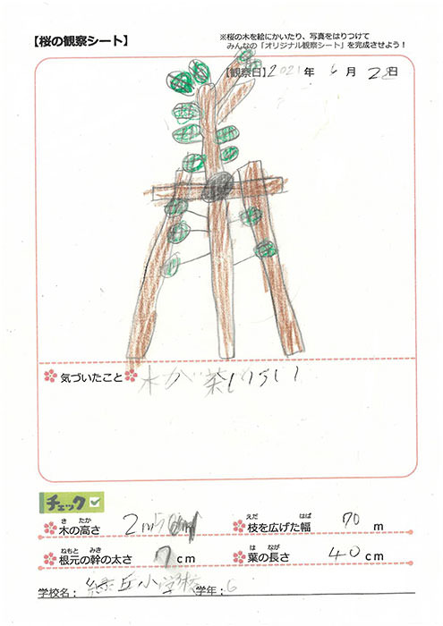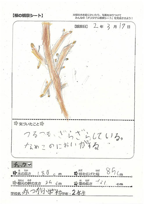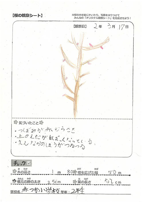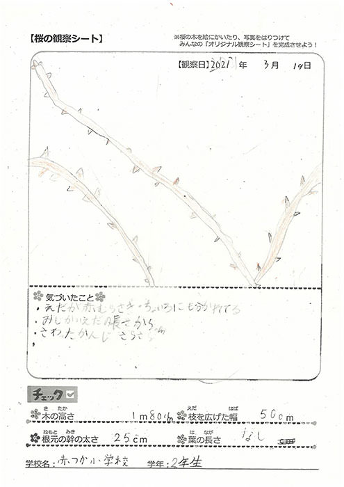桜プロジェクトを実施した小學校?幼稚園で植えた桜の観察會を実施しています。観察した桜を見て、みんなで桜の成長を共に楽しもう!!