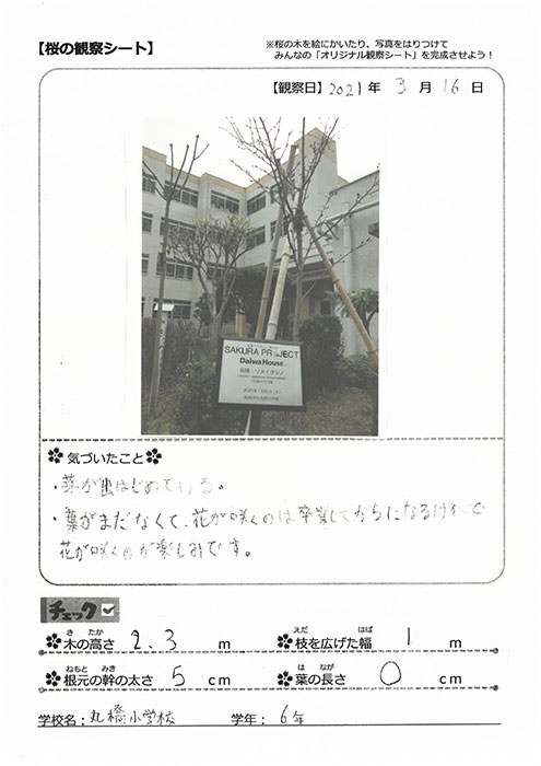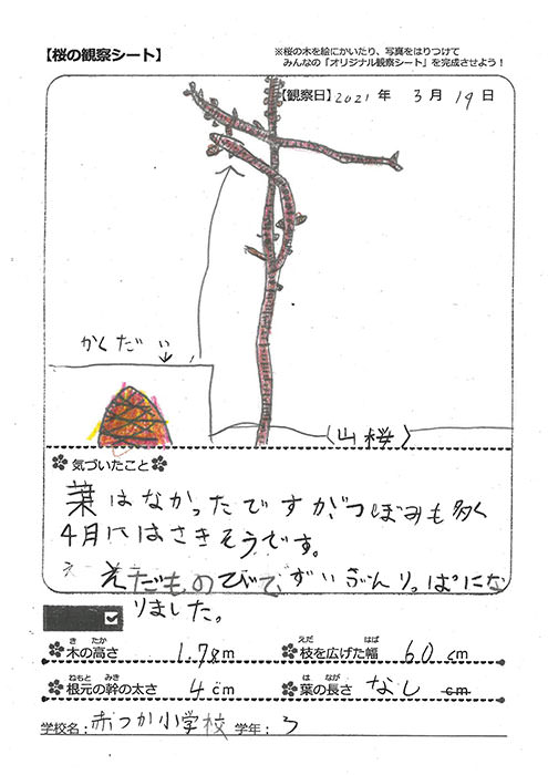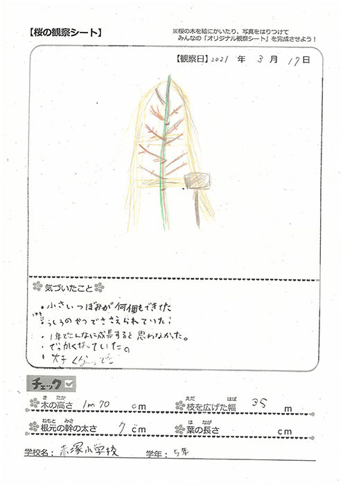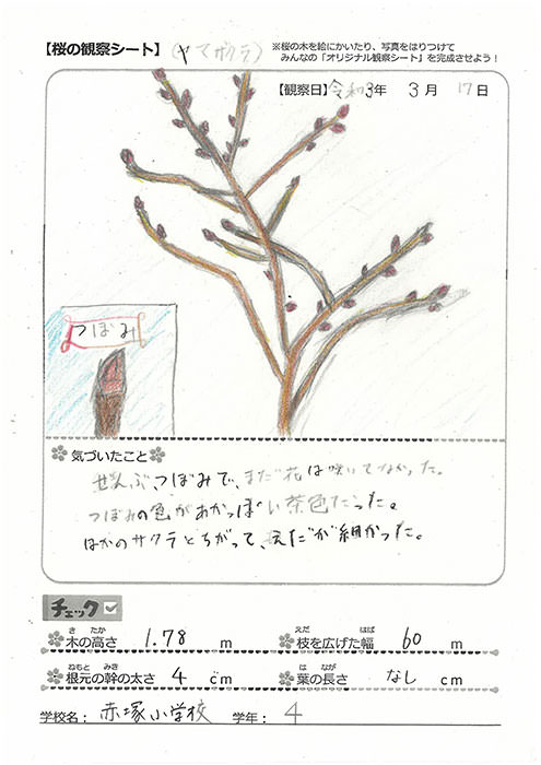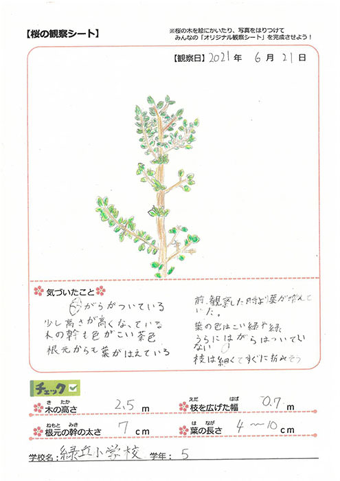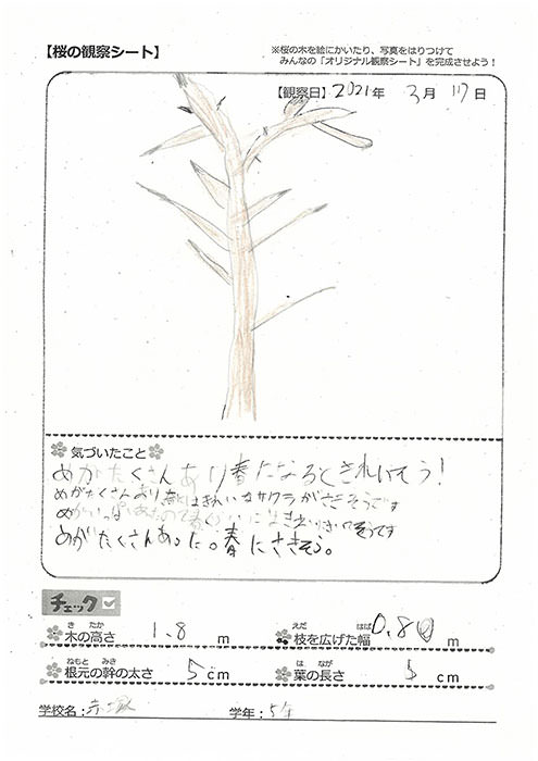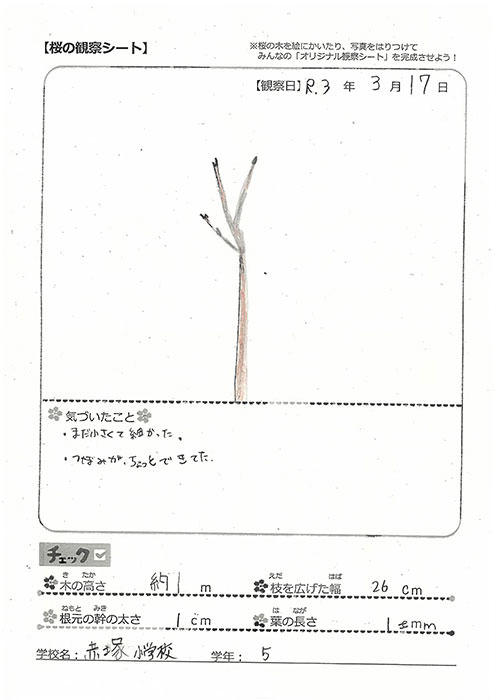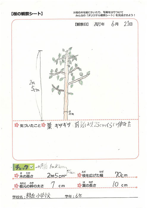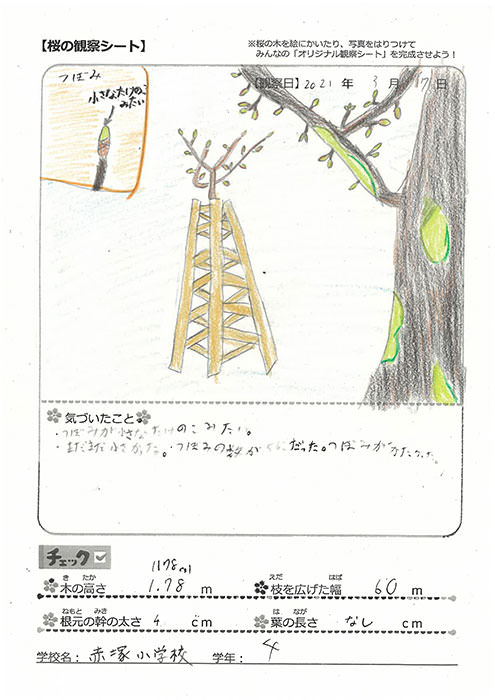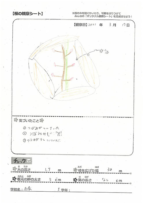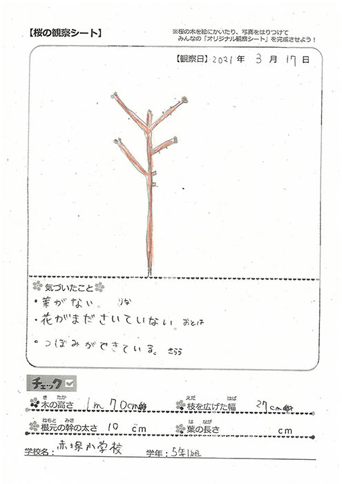 桜プロジェクトを実施した小學校?幼稚園で植えた桜の観察會を実施しています。観察した桜を見て、みんなで桜の成長を共に楽しもう!!