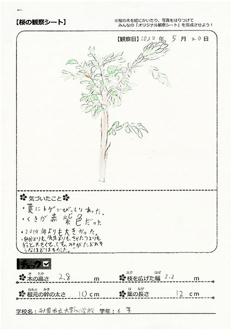 桜プロジェクトを実施した小學校?幼稚園で植えた桜の観察會を実施しています。観察した桜を見て、みんなで桜の成長を共に楽しもう!!