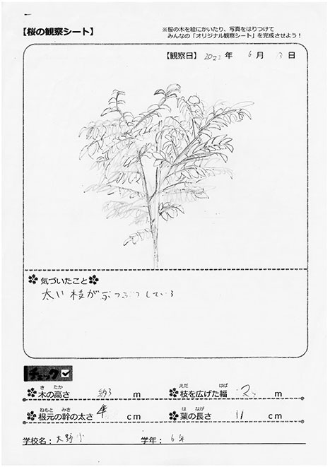 3年間ですくすくと成長しているようじゃのぉ。みんなが大切にお世話をしてくれているから、桜もいきいきとしておるぞい。數(shù)年後には、みんなのためにきれいな花を咲かせてくれるじゃろう。(さくじい)