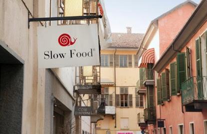 スローフード協會のロゴマークは、のんびり、ゆっくりの象徴であるかたつむり。