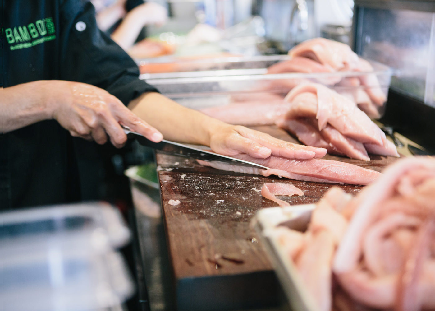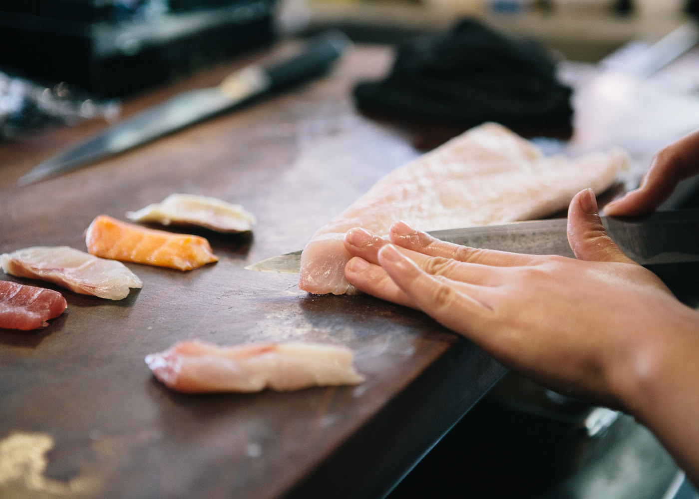 ネタの仕込みも、職人の手で丁寧に行われていく。