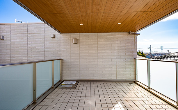 8帖あるバルコニーは、屋外にあるもう1つのリビングとしてさまざまな使い方が可能
