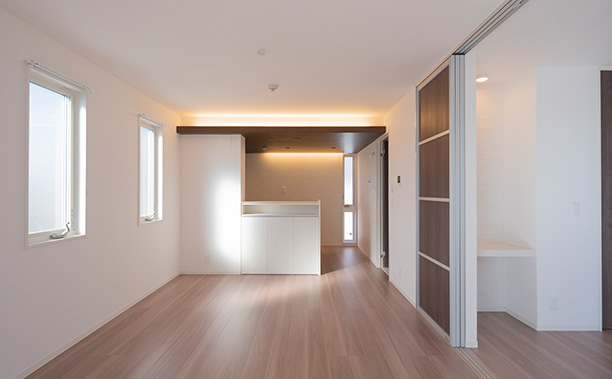 ゆとりのあるLDK。動線も工夫されており使いやすい空間になっています。