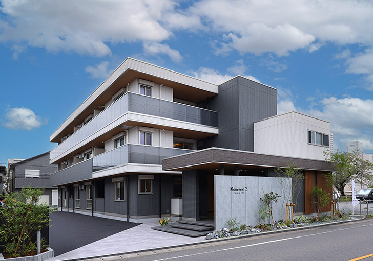 設計にあたっては、今回建築していただいた商品「TORISIA」のカタログにメインで掲載している建物のシルエットを再現することをコンセプトとして、建物のデザインは大きく変えずに、エントランス上部をタイル貼りにするなどのご提案を加えました。さらに、建物は準耐火建築物で、Nearly ZEH-M基準をクリア。ご入居者の快適性、安心して暮らせる環境を提供しています。