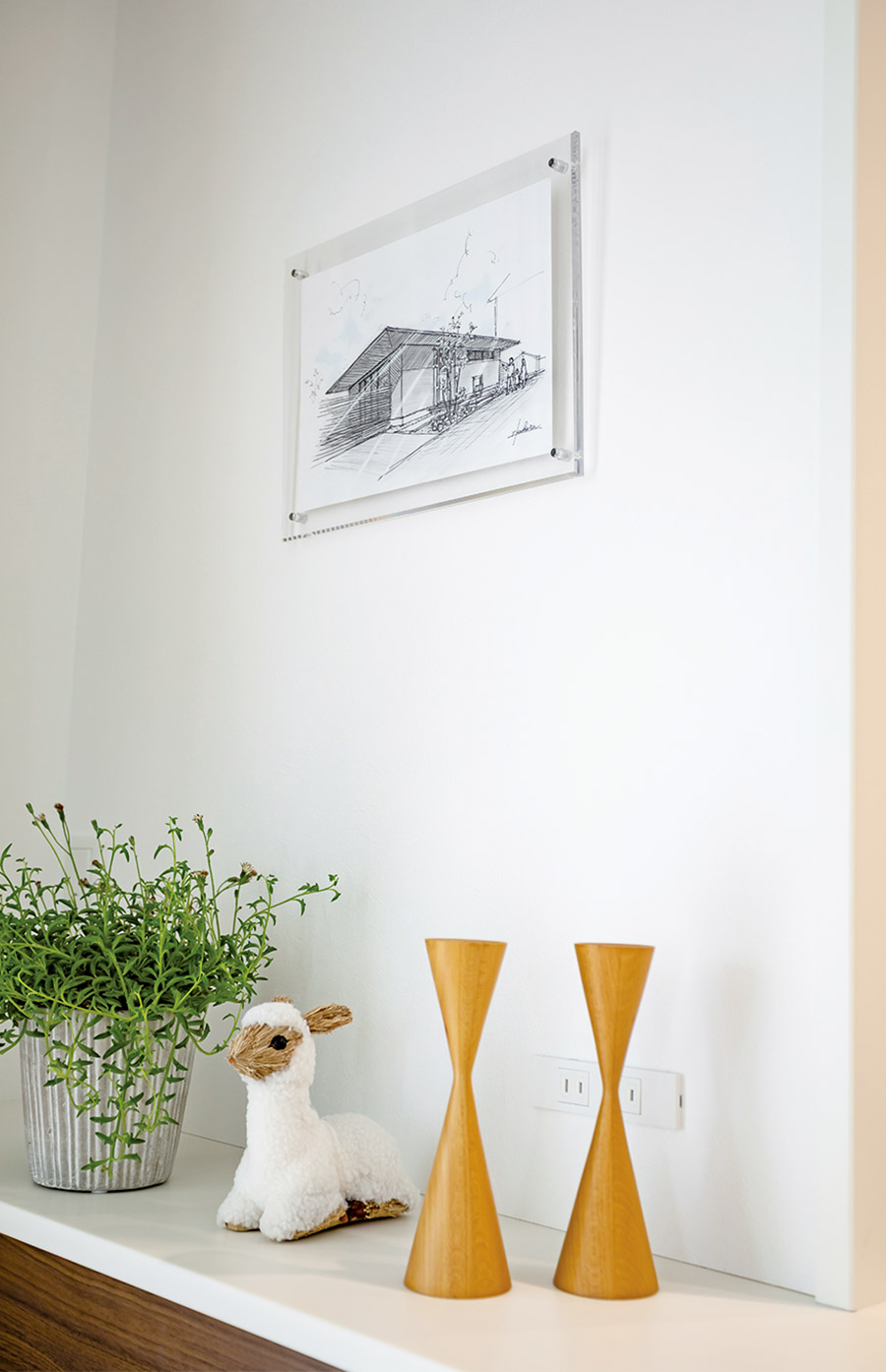 ダイニングには、設計士が贈った外観スケッチが大切に飾られています