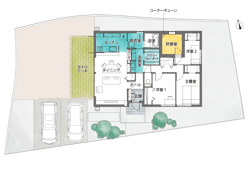 憧れだった防音室、無駄のない家事動線、そして家族が集うタイルデッキ。