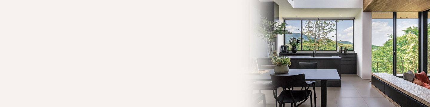 窓の向こうに見える山並みや木立、ぽっかりと切り取られた空。LDKに一歩足を踏み入れると、住宅街にいることを忘れてしまうほどの眺望が目に飛び込んできます。「窓をたくさん設(shè)けて、風(fēng)が通り抜ける家にしたい」というSさまの願いをかなえた、自然と隣り合わせの住まいです。