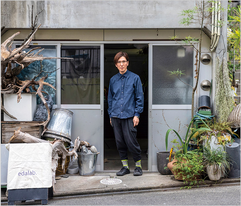 獨創的な作品で注目されるフローリスト、「edalab.(エダラボ)」の前田裕也さん。