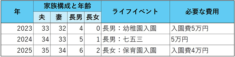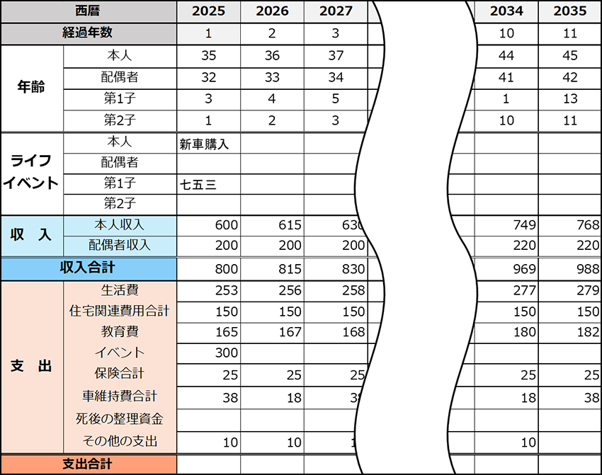 表2:ライフプラン表の記載例