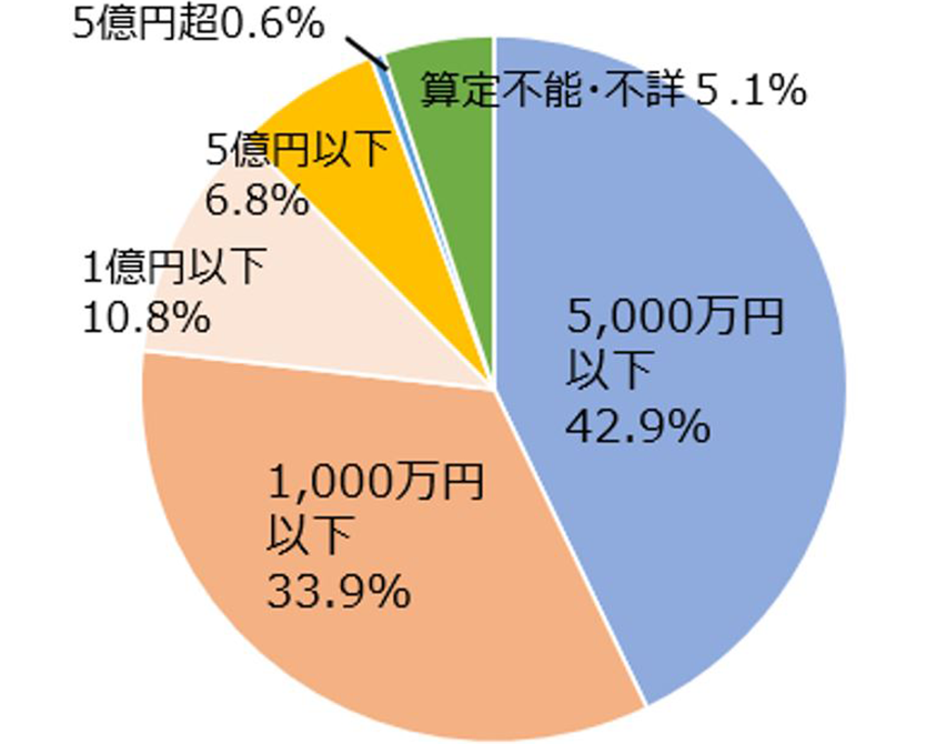出典:令和元年度 遺産分割事件のうち認容?調停成立件數(?分割をしない?を除く)遺産の內容別遺産の価額別 全家庭裁判所司法統計より作成(小數第二位を四捨五入)