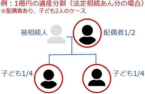 例:正味の遺産額が1億円の時の法定相続人の割合はいくらになるのでしょうか。
