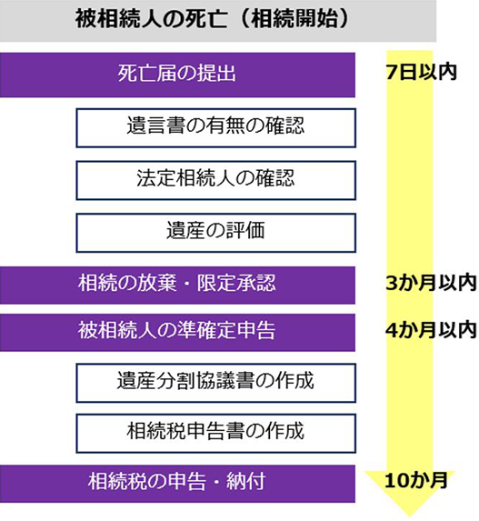 被相続人が亡くなってから相続が開始されます。それぞれ期限があるものもありますので、注意しましょう。