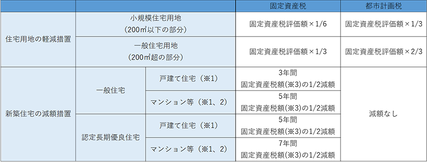 固定資産稅の算出は上記の通りですが、條件に基づいて軽減措置があります。