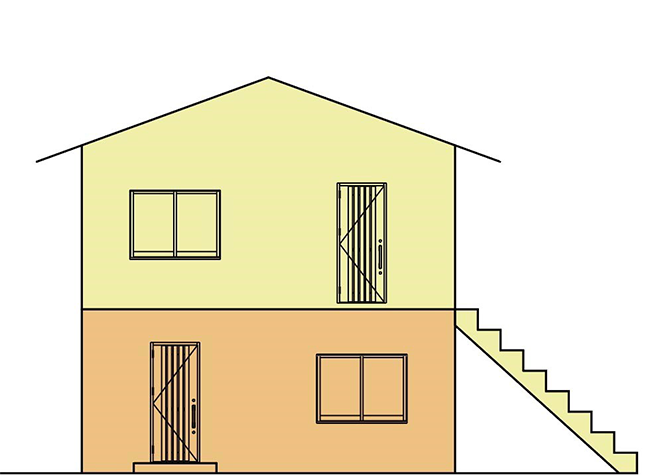 建物は1つなのですが、それぞれの生活空間は獨(dú)立した形狀となります。 玄関が別々ですので、建築基準(zhǔn)法的には長屋ですが、共有の階段や廊下が発生すると共同住宅の扱いとなります。また、建物の一部を賃貸として活用することも可能です。
