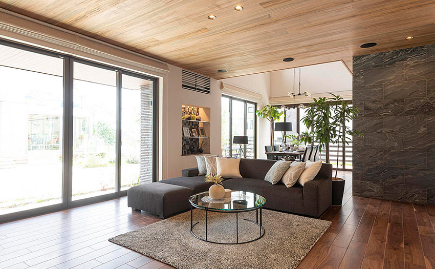 天井高を意識するのと同時に考えたいのが室溫調(diào)整。壁面に占めるガラスの割合が大きくなることで気密性?斷熱性などにも配慮が必要です。安心?安全に、そして心地よく暮らすために、適切な家の構(gòu)造や空調(diào)システムを選ぶことが大切です。