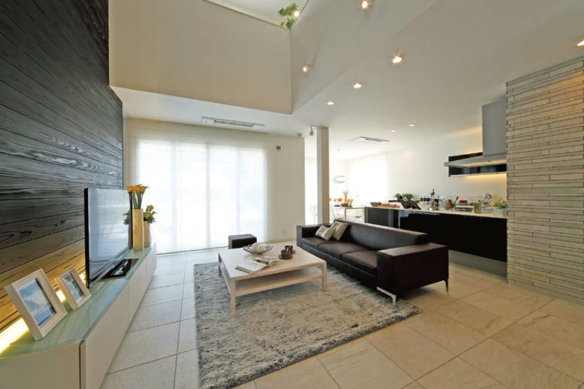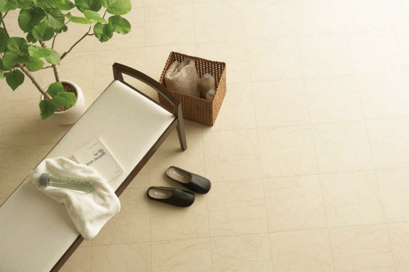 大判のタイルは高級感を演出できるため、リビングなどにも適しています。