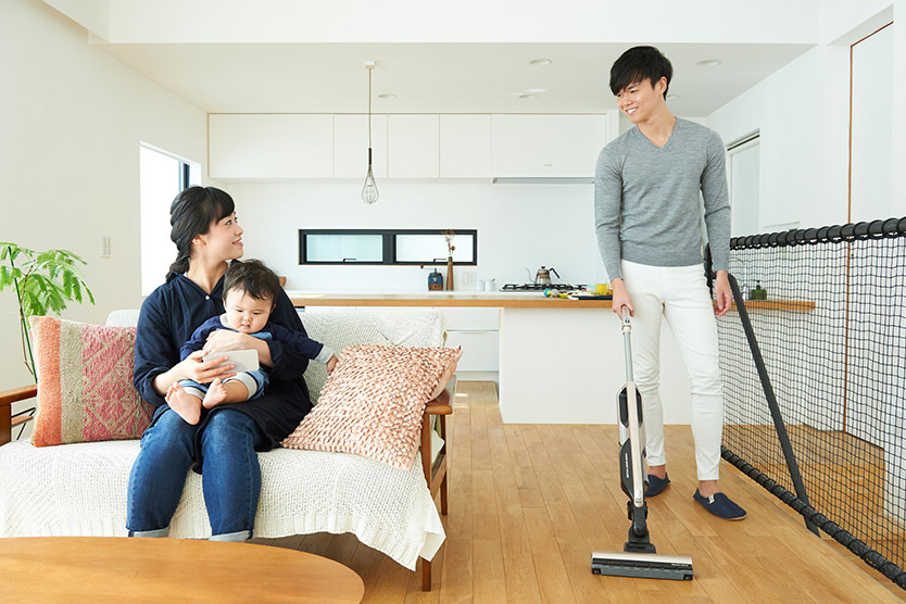 動線の工夫や、家事に使うものの場所をわかりやすくすることで、自分のことは自分でしやすくなる上、家族全員が無理なく、楽しく家事に參加できるようになります。家族全員で家事を分け合える仕組みをつくることが大切です。