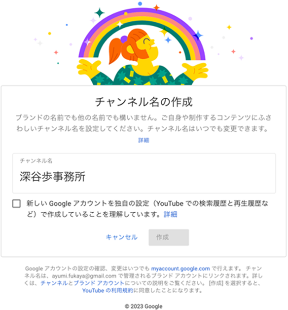 ただし、下記でご説明するブランドアカウントとしてYouTubeチャンネルを作成する場(chǎng)合は、アクセスできるGoogleアカウントを登録できるので、個(gè)人のアカウントで作成しても問題ありません。