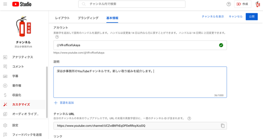 - (1)チャンネルのカスタマイズの「基本情報(bào)」タブで「アカウント」の文字列を変更する